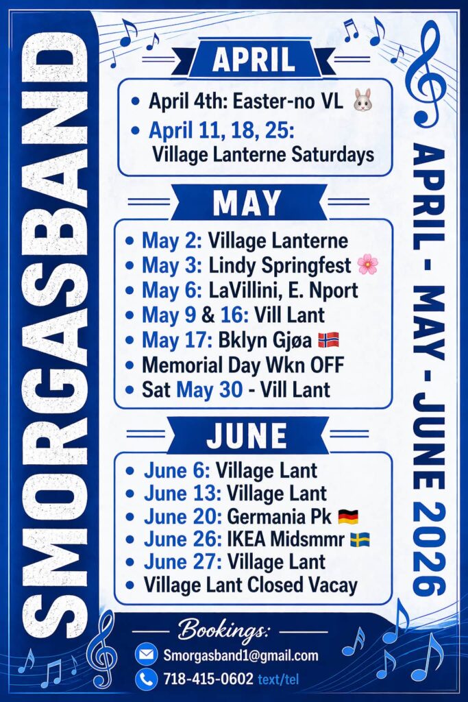 We specialize in Scandinavian, German, Irish and American music! For Bookings: Call or Text us at 718-415-0602
